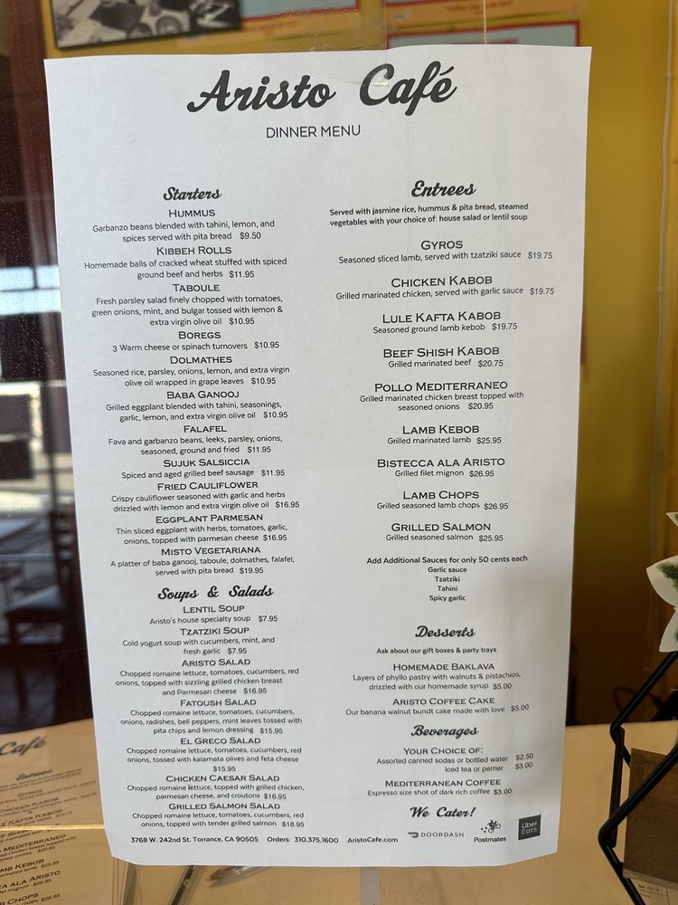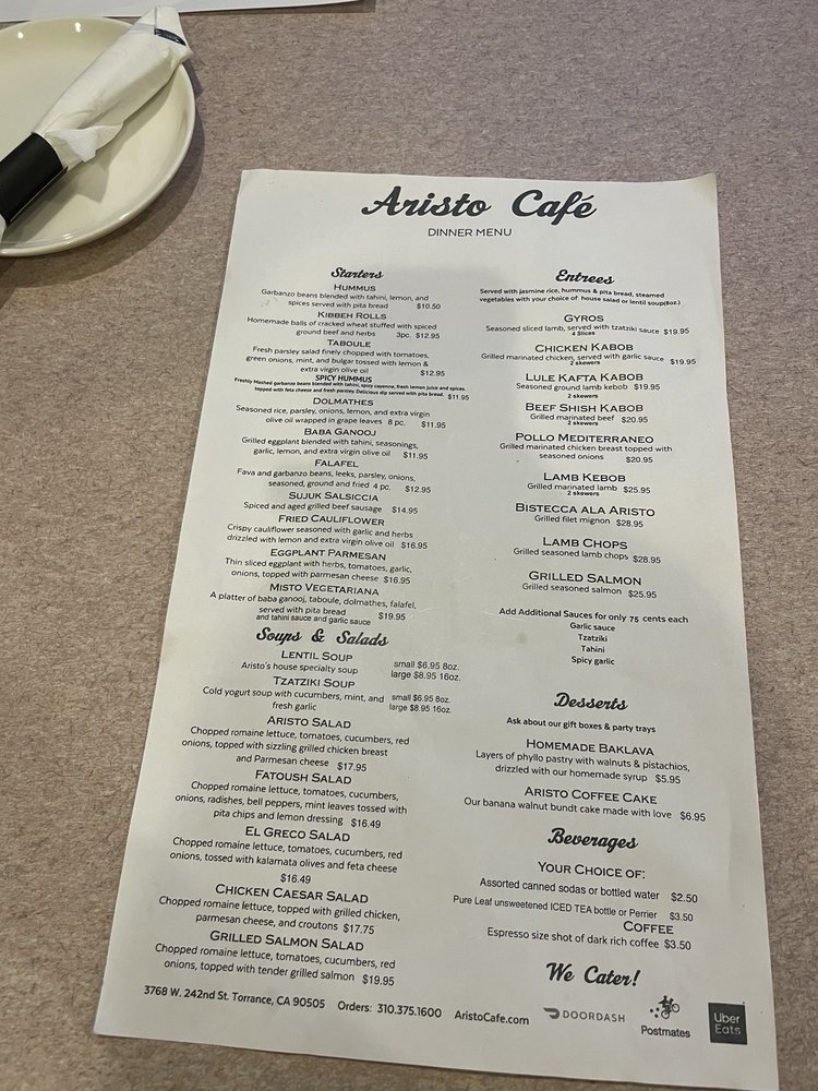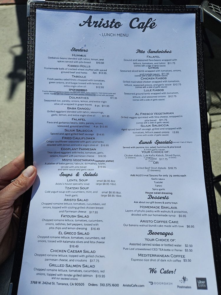 Welcome to Aristo Cafe, a charming Mediterranean haven located at 3768 W 242nd St, Torrance, CA. This family-run gem offers a delightful fusion of flavors steeped in tradition. With three generations dedicated to providing authentic Lebanese cuisine, every dish tells a story.